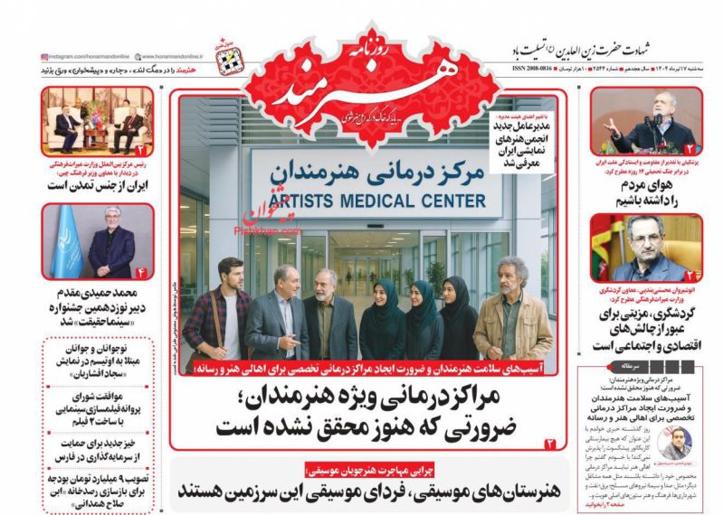 هنرمند ، سهشنبه ۱۷ تیر