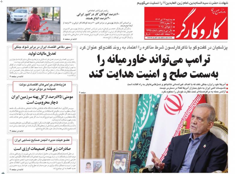 کار و کارگر ، سهشنبه ۱۷ تیر