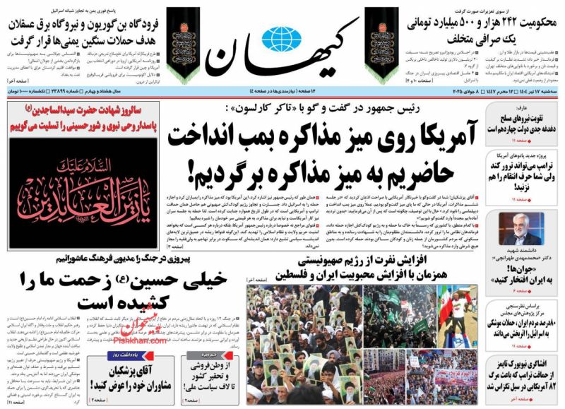 کيهان ، سهشنبه ۱۷ تیر