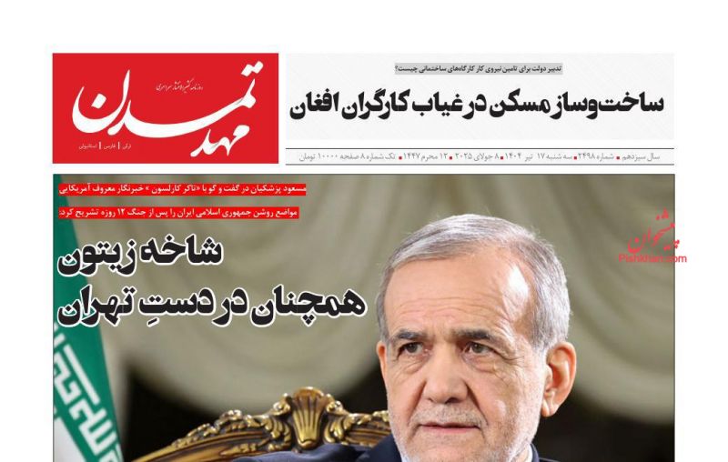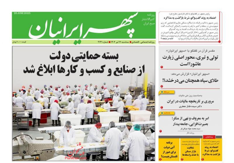 عصر ایرانیان ، سهشنبه ۱۷ تیر