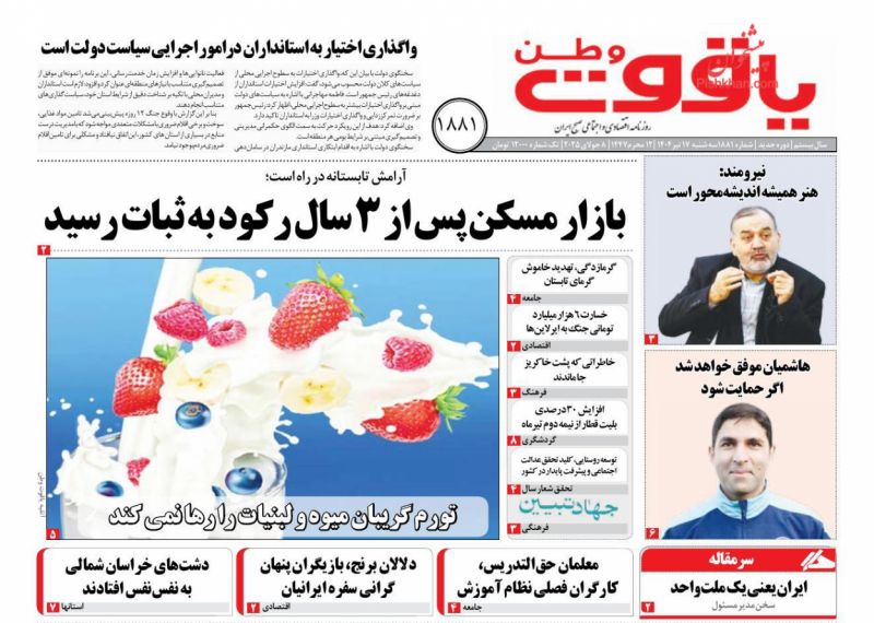 اعتماد ، سهشنبه ۱۷ تیر