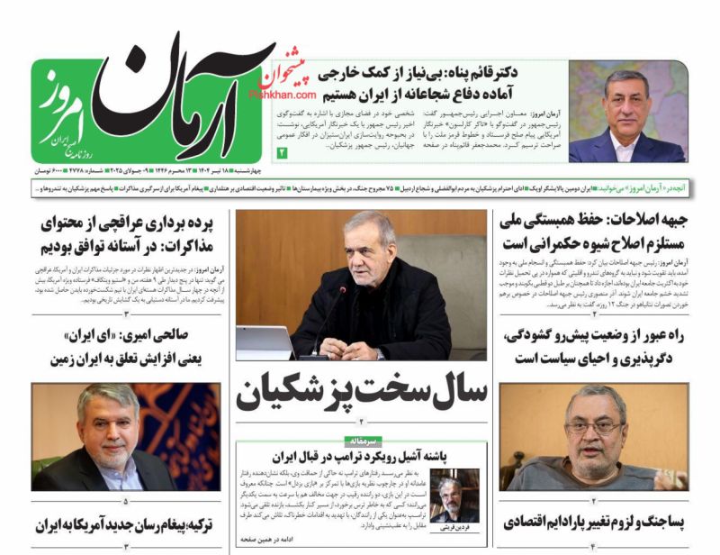 آرمان امروز ، چهارشنبه ۱۸ تیر