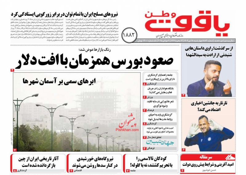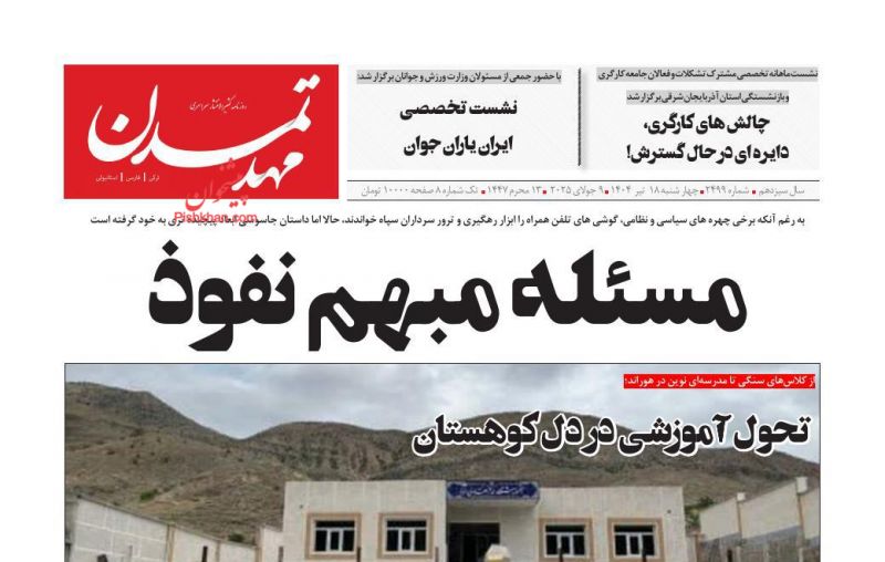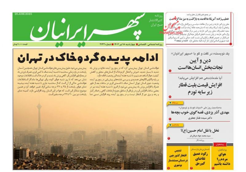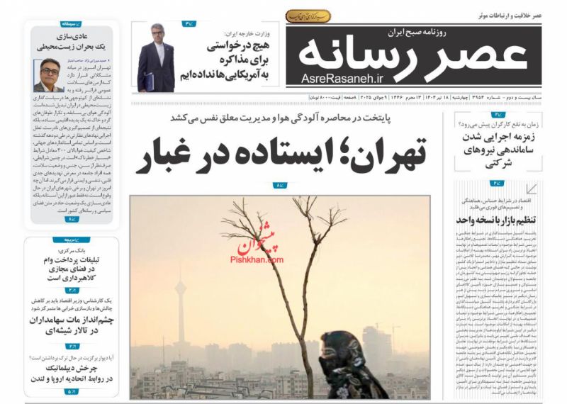 عصر ایرانیان ، چهارشنبه ۱۸ تیر