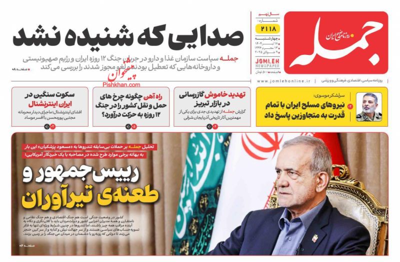 جمهوری اسلامی ، چهارشنبه ۱۸ تیر