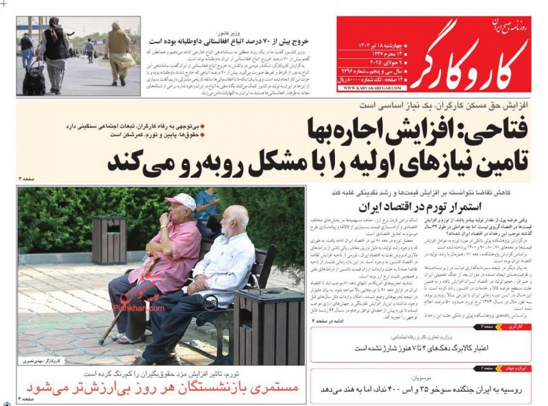 کار و کارگر ، چهارشنبه ۱۸ تیر
