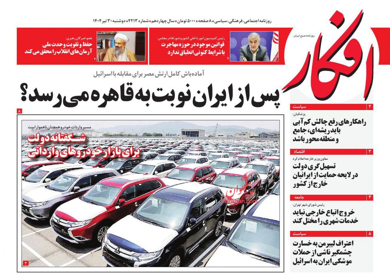 عصر ایرانیان ، دوشنبه ۳۰ تیر