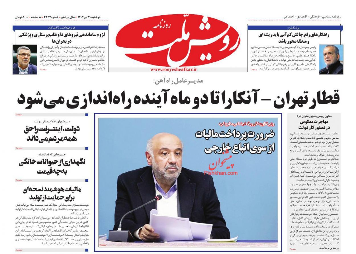 اقتصاد ملی ، دوشنبه ۳۰ تیر