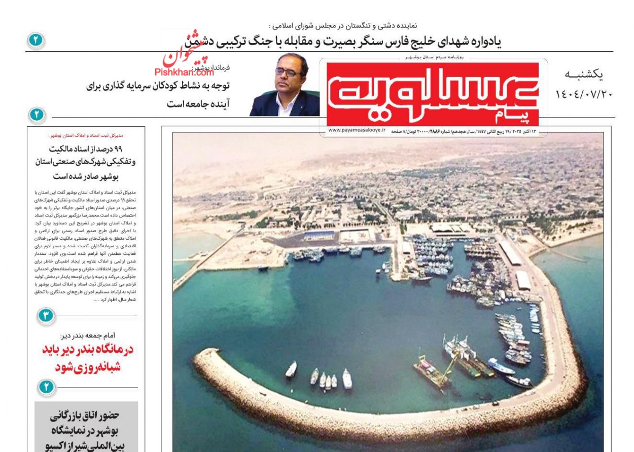 پیام عسلویه ، یکشنبه ۲۰ مهر