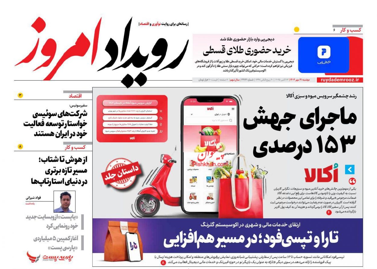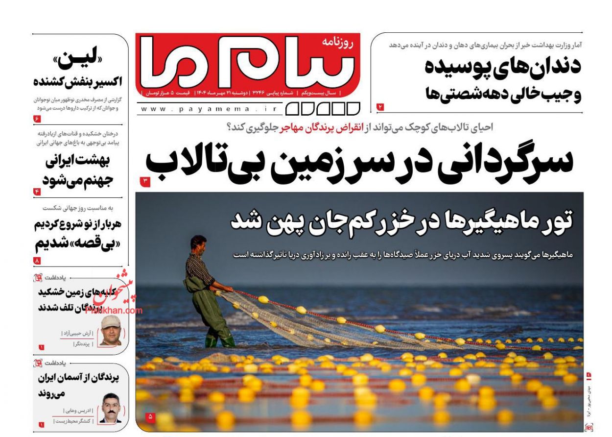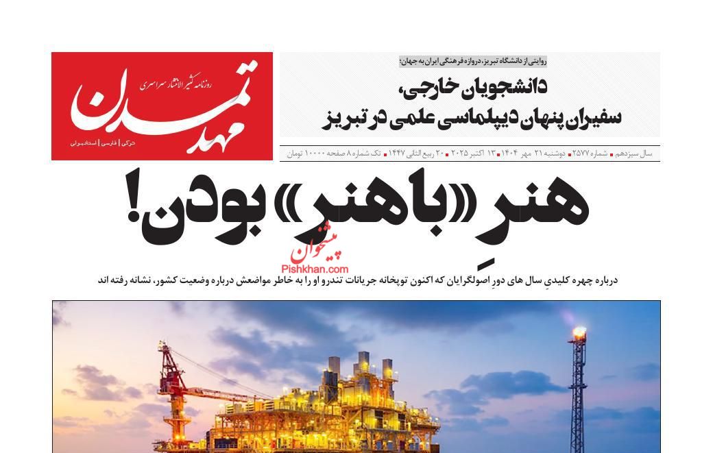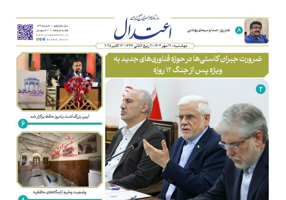 عصر ایرانیان ، دوشنبه ۲۱ مهر