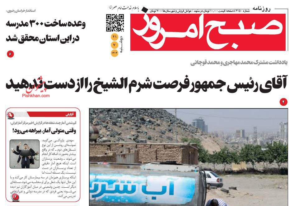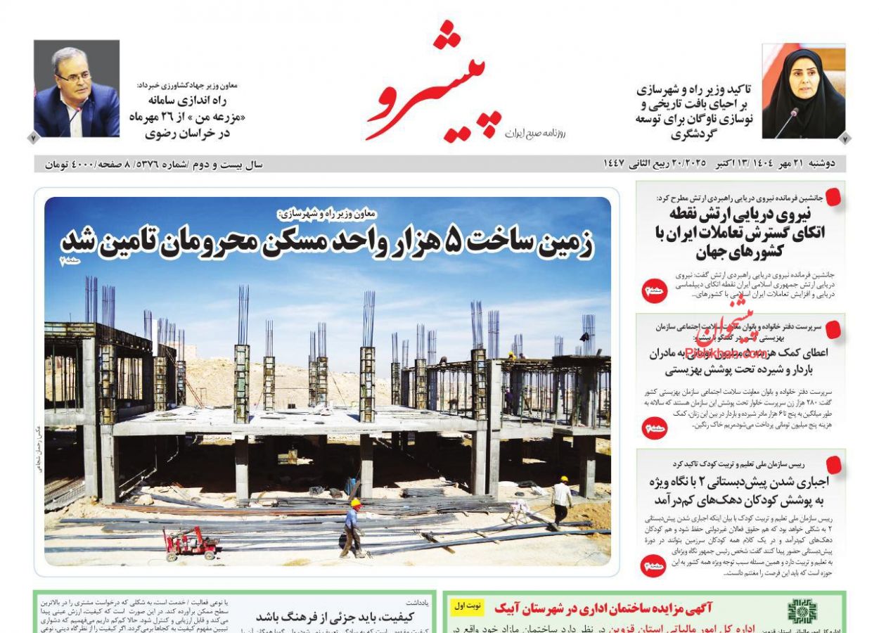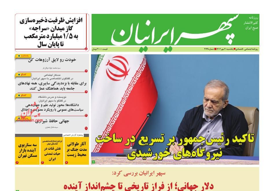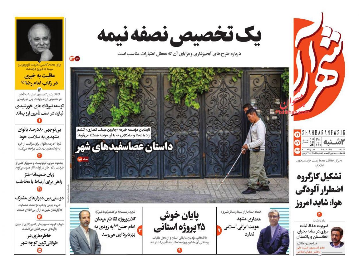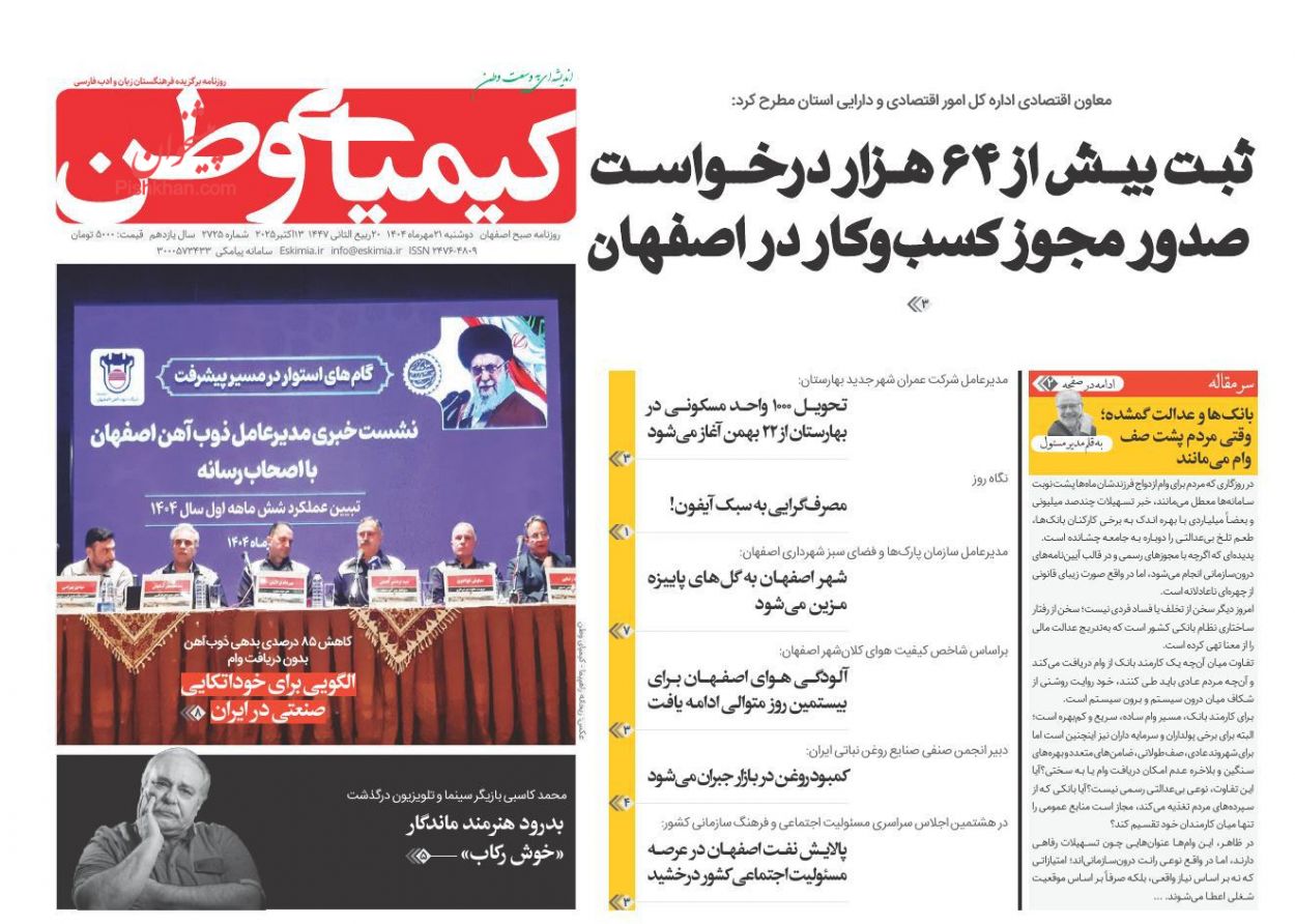 عصر ایرانیان ، دوشنبه ۲۱ مهر