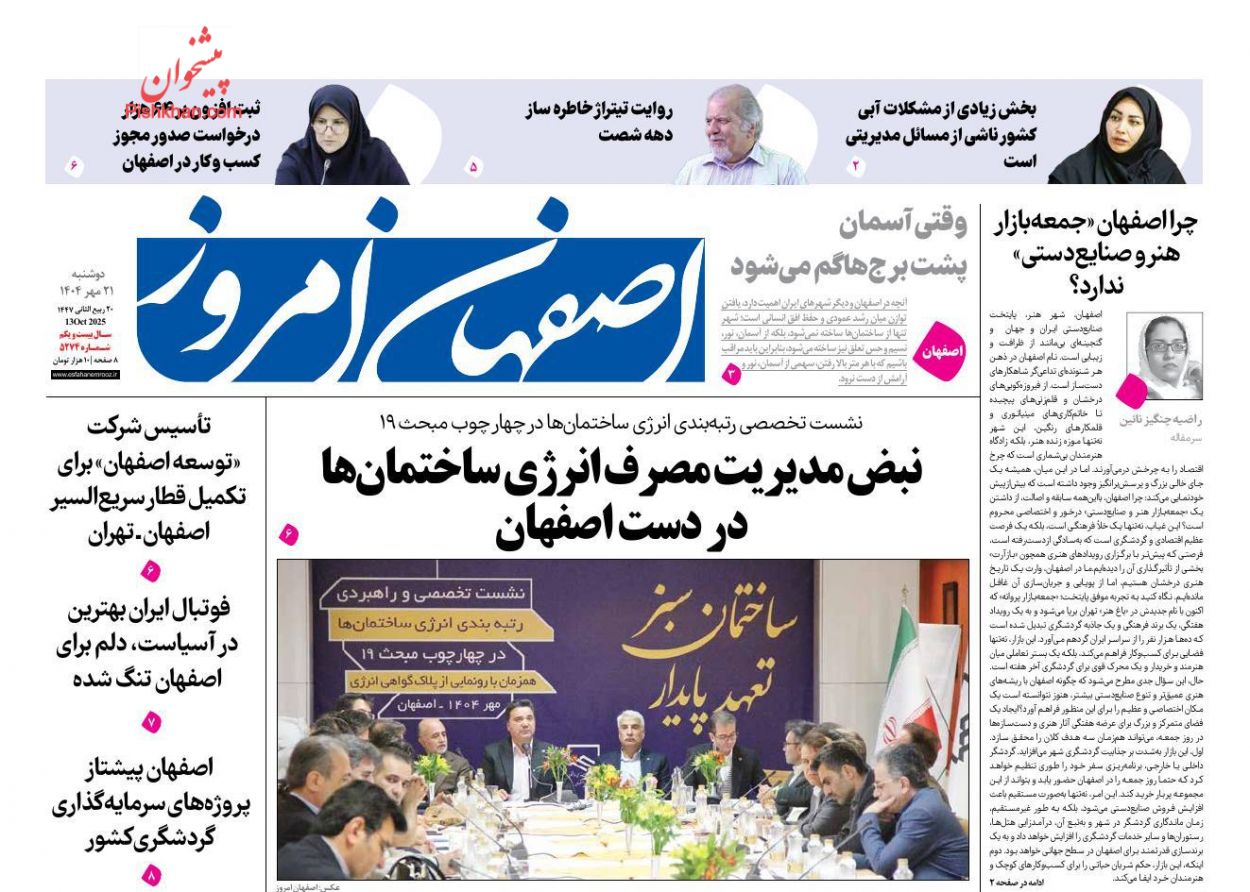 اصفهان امروز ، دوشنبه ۲۱ مهر