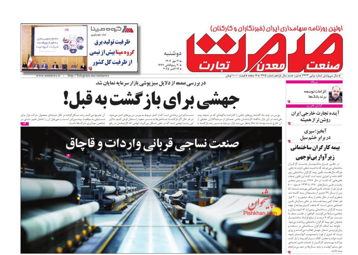 جهان صنعت ، دوشنبه ۲۱ مهر