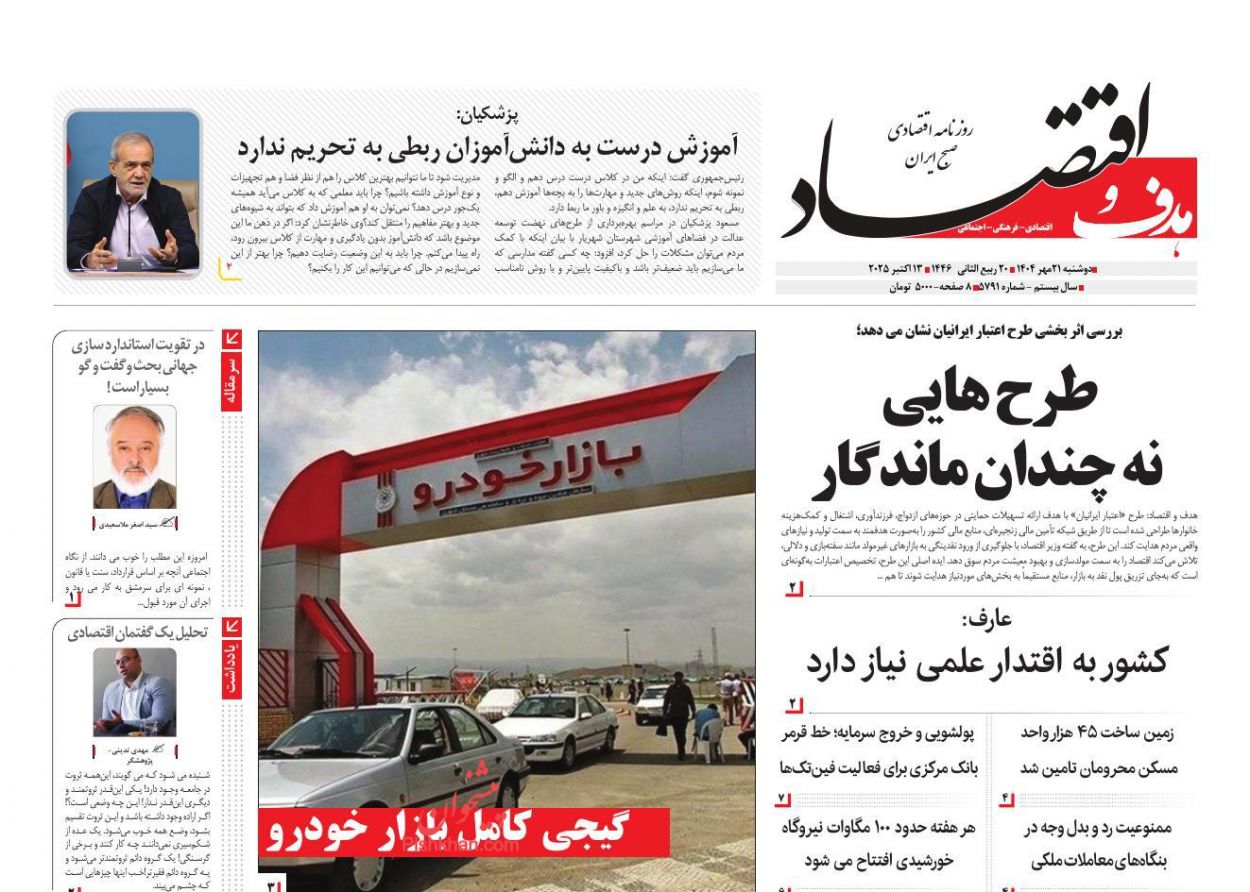 هدف و اقتصاد ، دوشنبه ۲۱ مهر