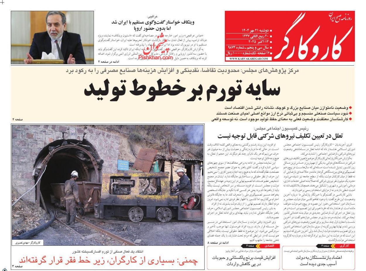 کار و کارگر ، دوشنبه ۲۱ مهر