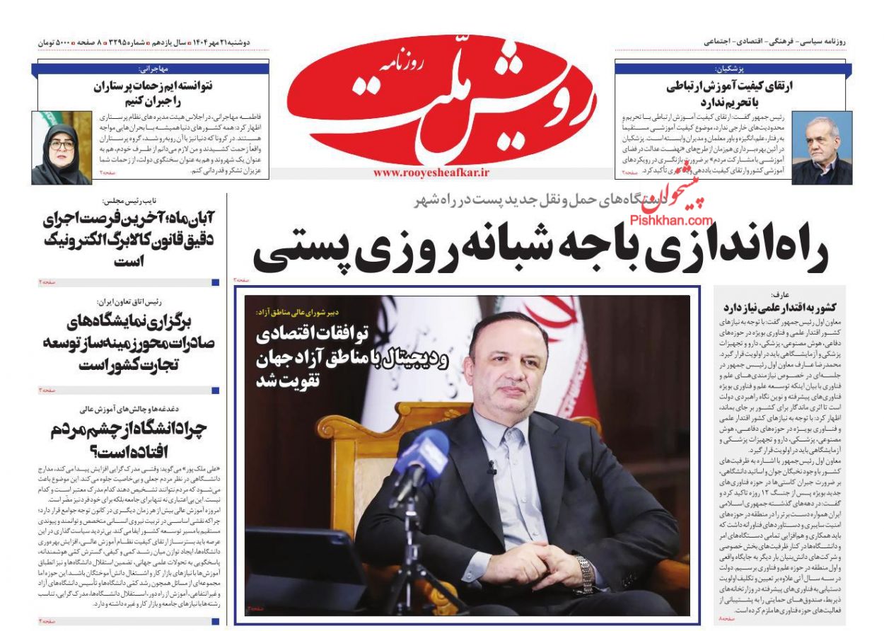جمهوری اسلامی ، دوشنبه ۲۱ مهر