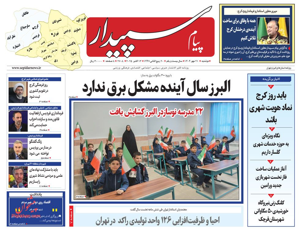 پیام سپیدار ، دوشنبه ۲۱ مهر
