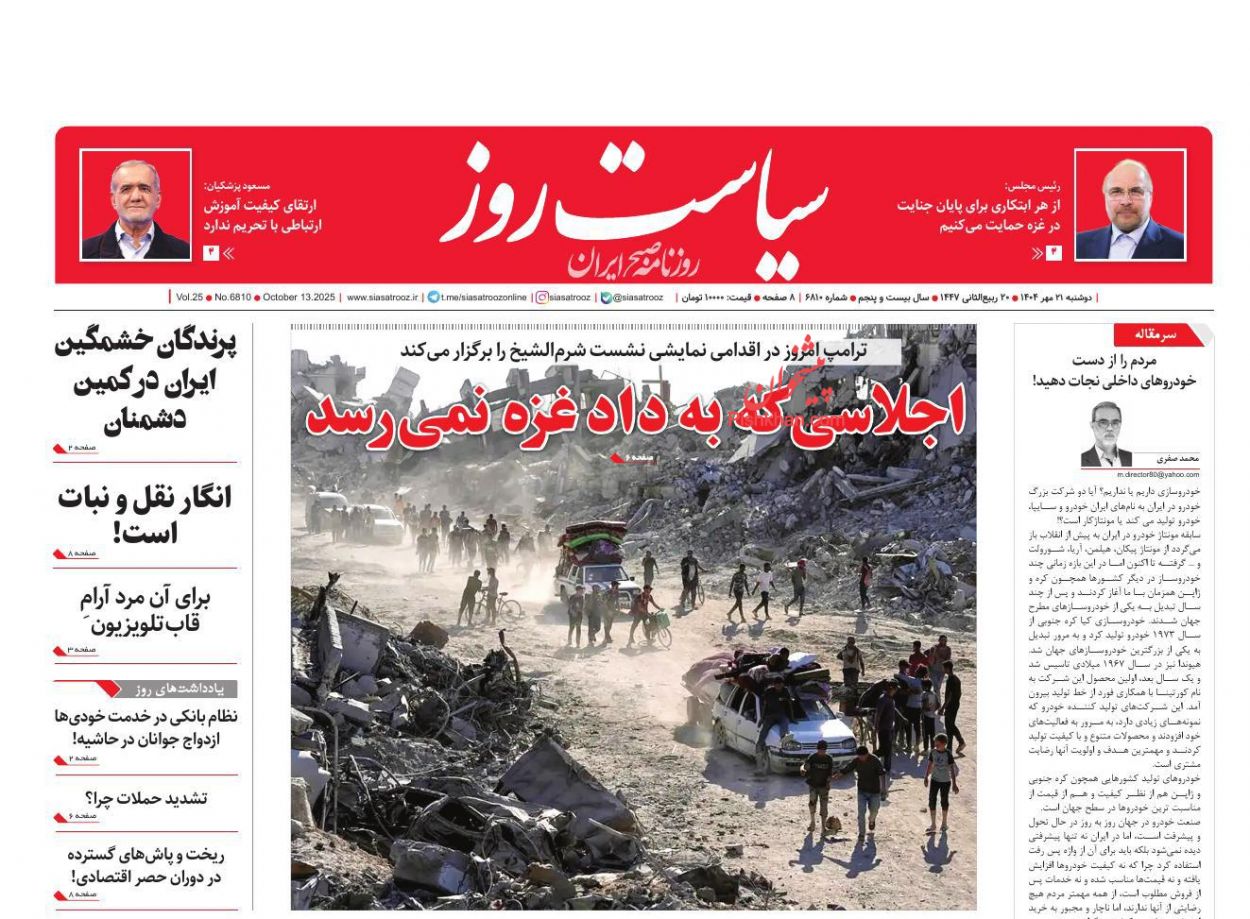 مردم سالاری ، دوشنبه ۲۱ مهر