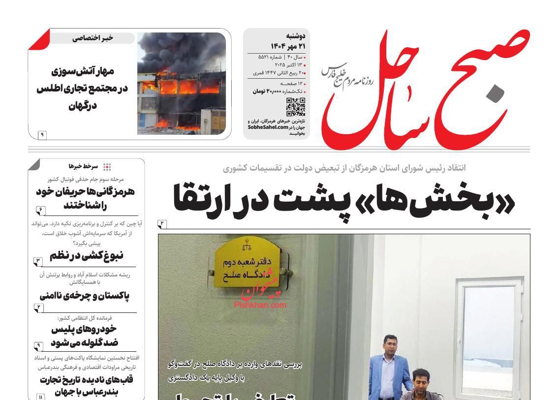 صبح ساحل ، دوشنبه ۲۱ مهر