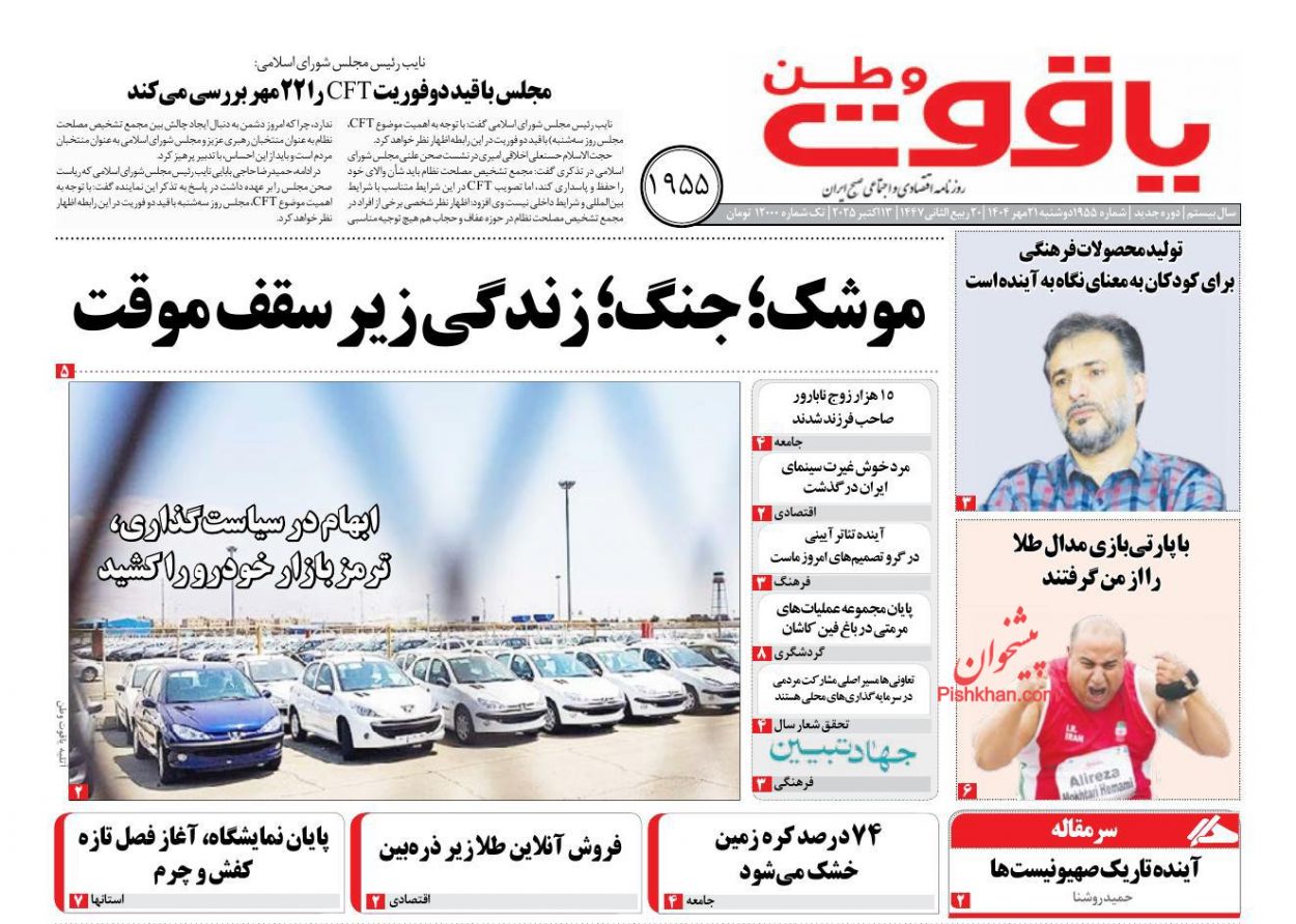 با ثبت نام در خبرنامه پیشخوان، هر روز تصویر روزنامهها را در ایمیل خود دریافت کنید.