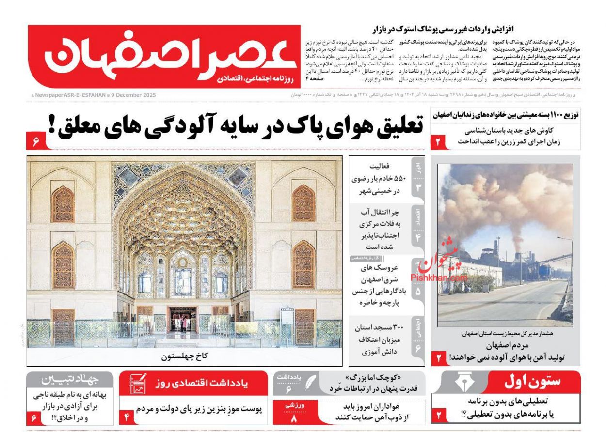 عصر اصفهان ، سهشنبه ۱۸ آذر