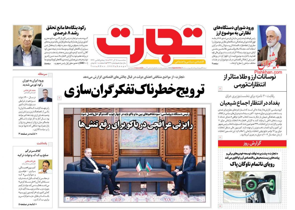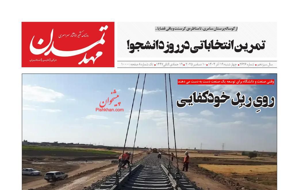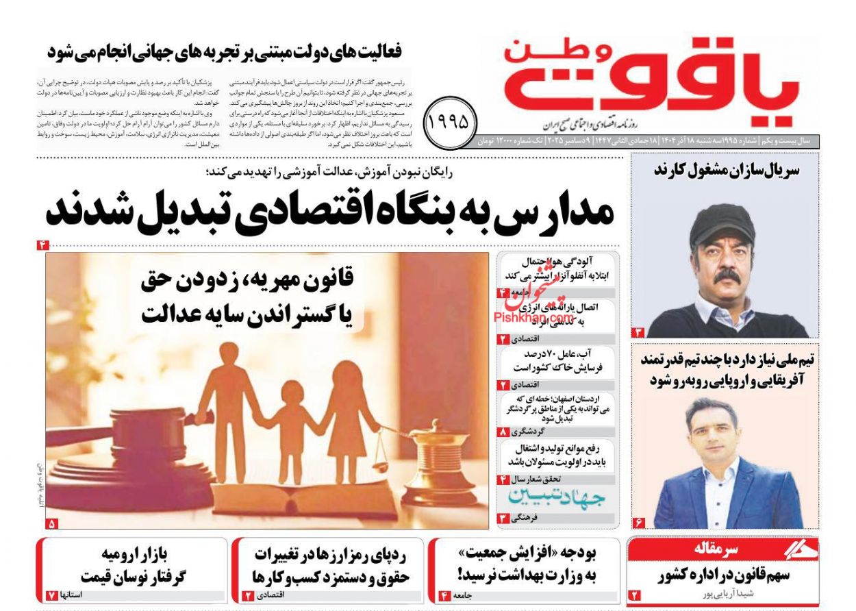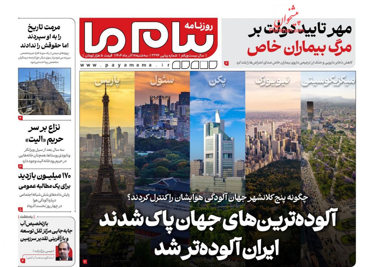 عصر ایرانیان ، سهشنبه ۱۸ آذر