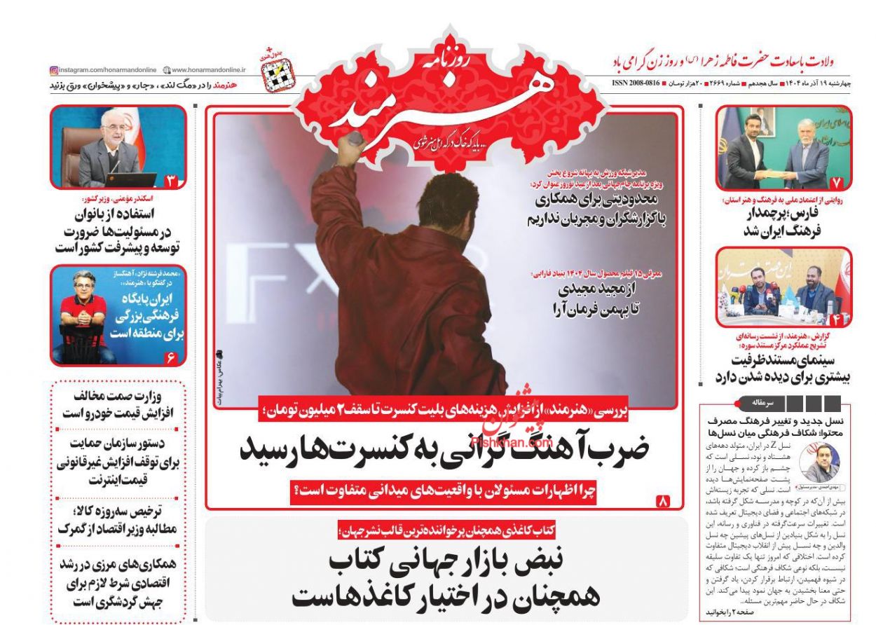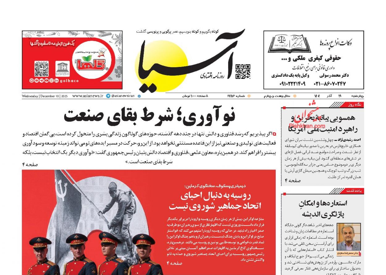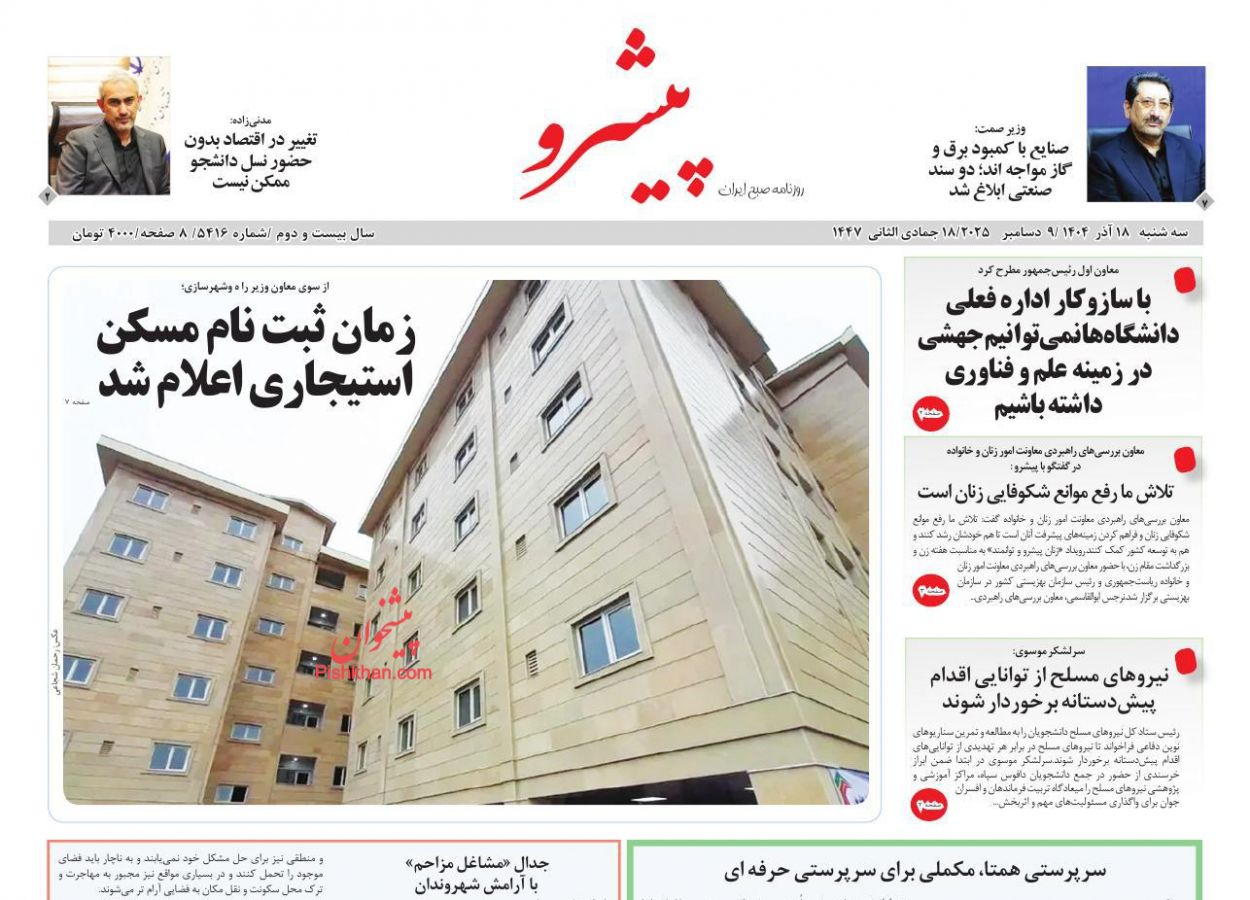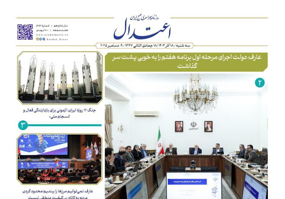 عصر ایرانیان ، سهشنبه ۱۸ آذر