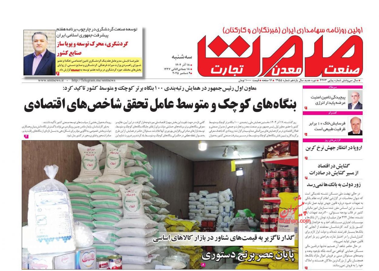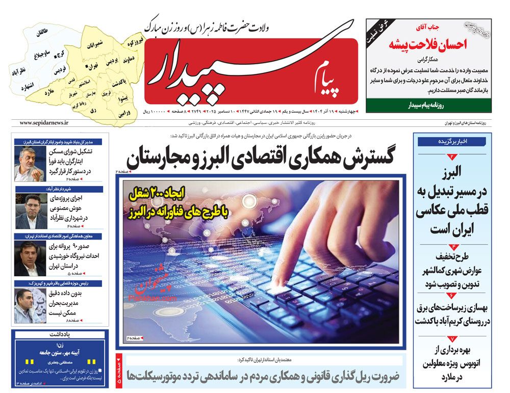 ابرار اقتصادی ، چهارشنبه ۱۹ آذر