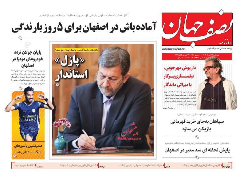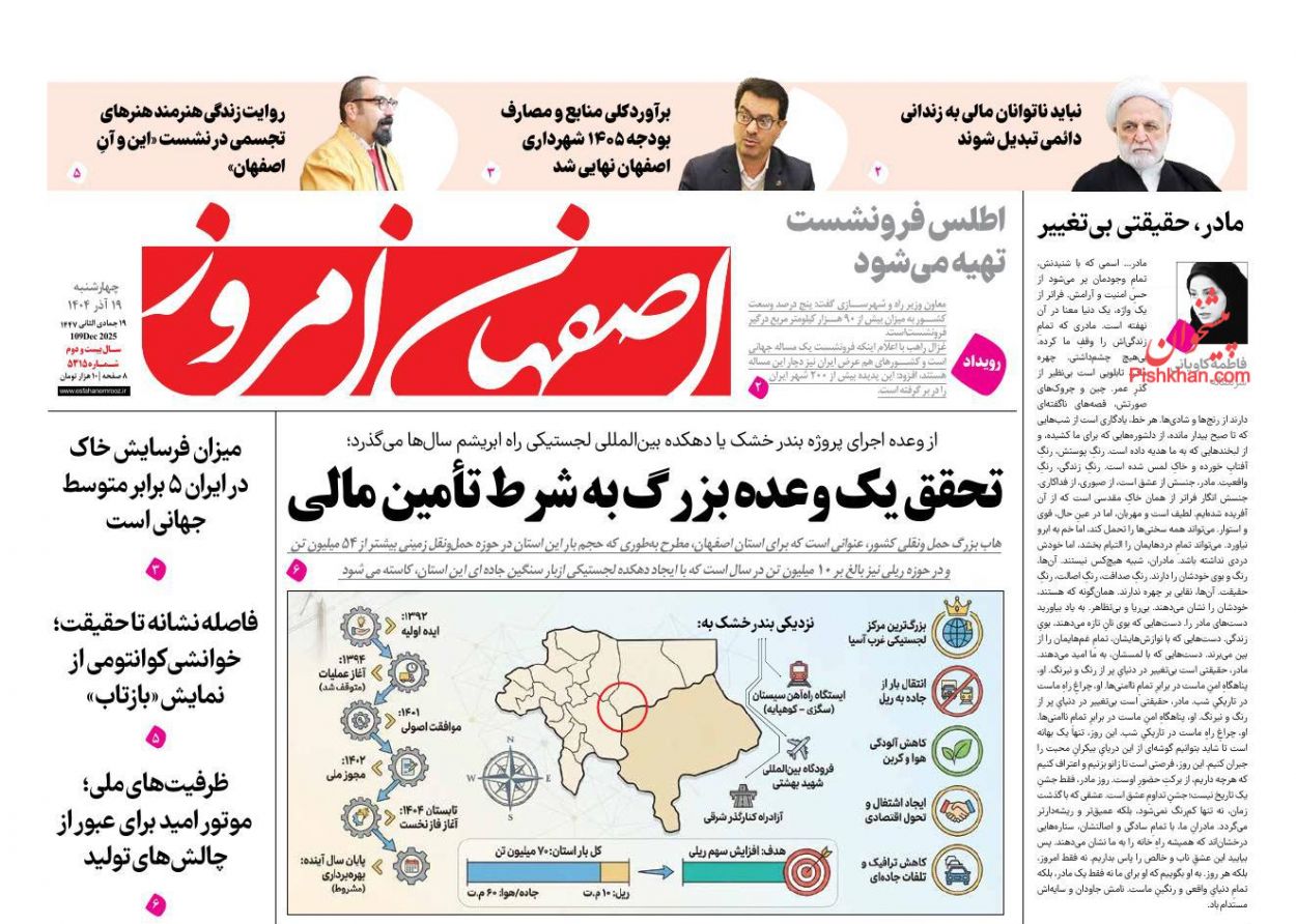 اصفهان امروز ، چهارشنبه ۱۹ آذر