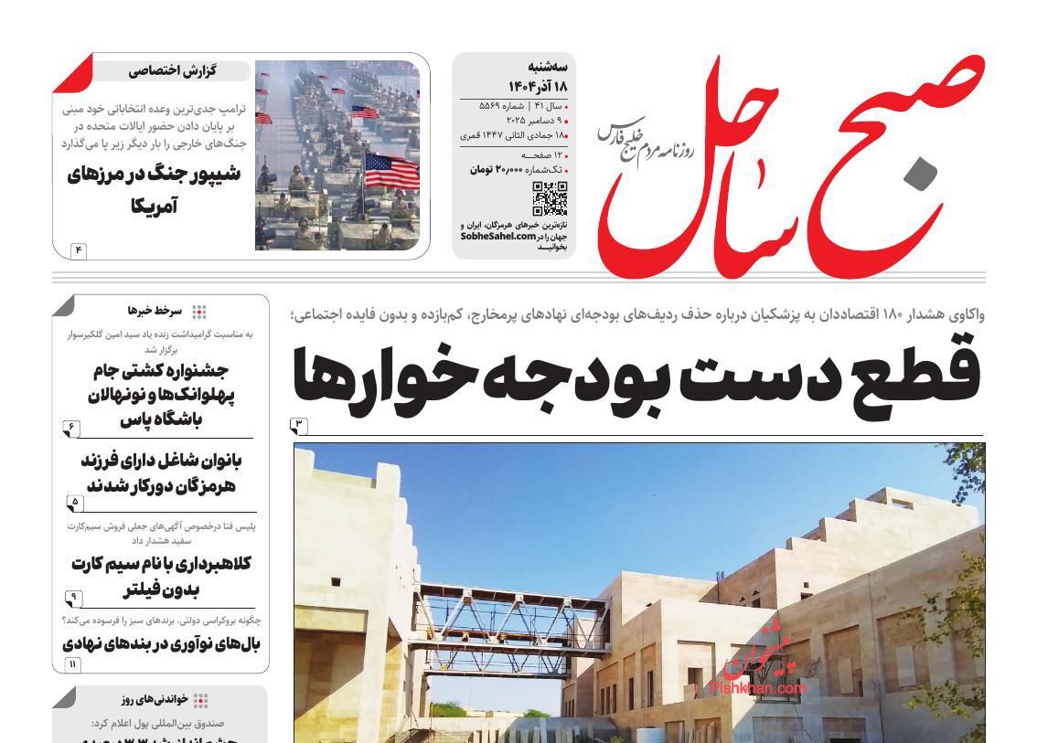 صبح ساحل ، سهشنبه ۱۸ آذر