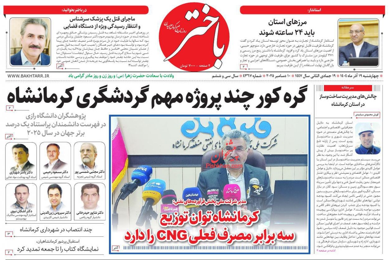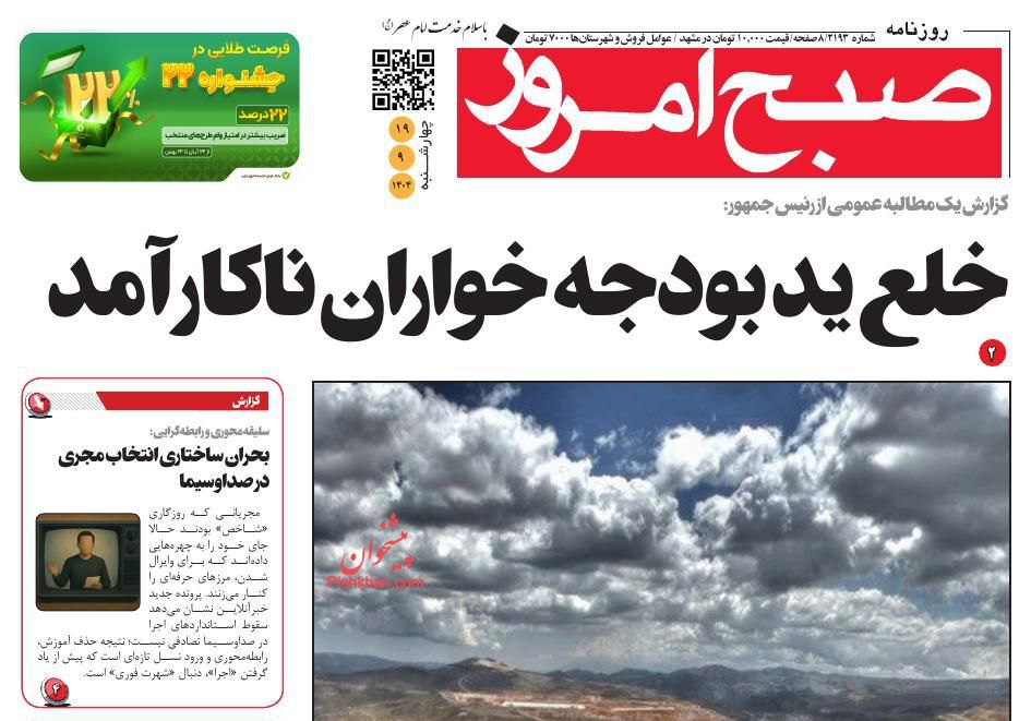 صبح امروز ، چهارشنبه ۱۹ آذر
