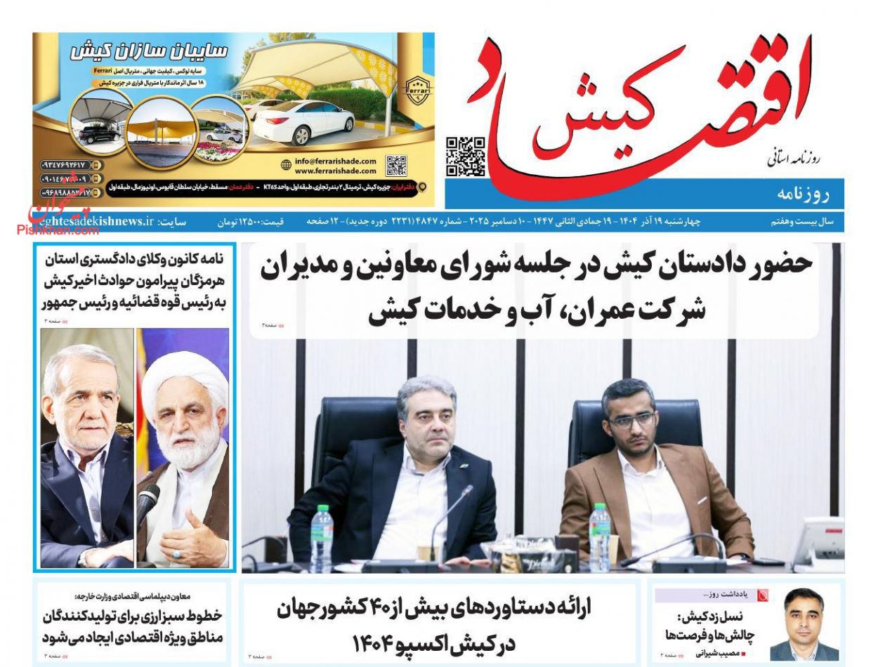 اقتصاد کیش ، چهارشنبه ۱۹ آذر