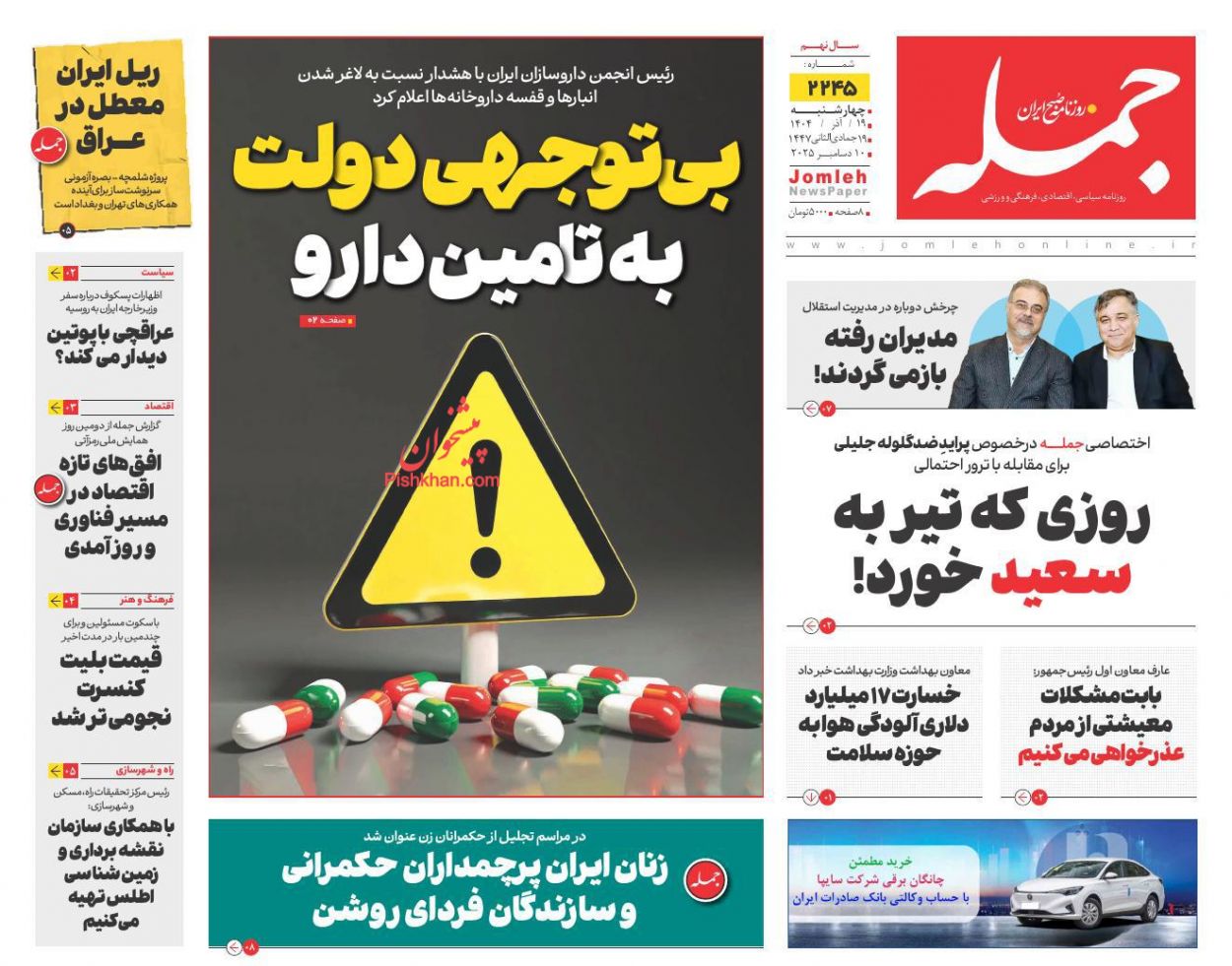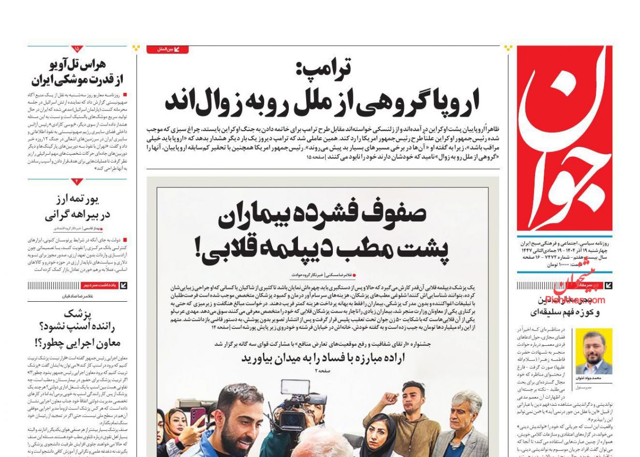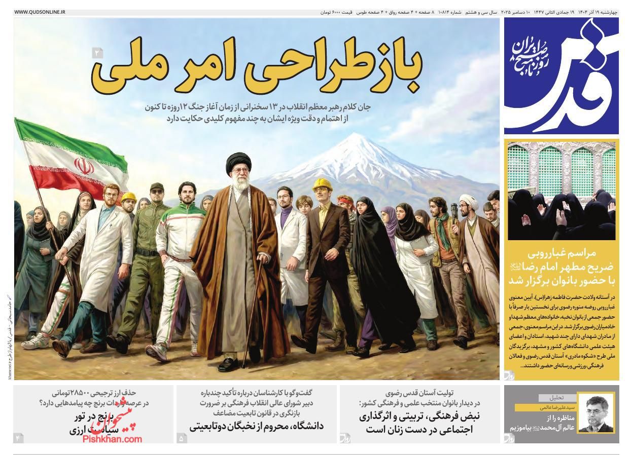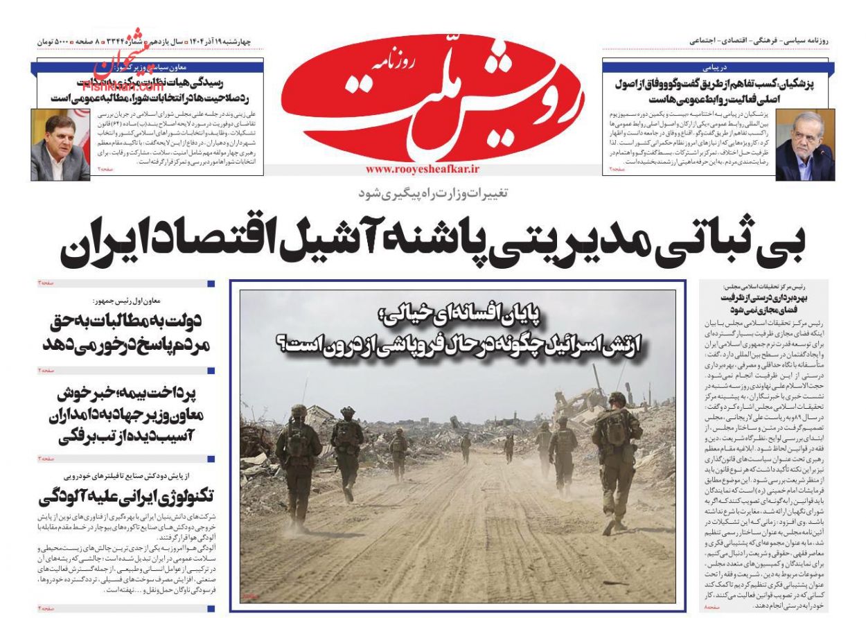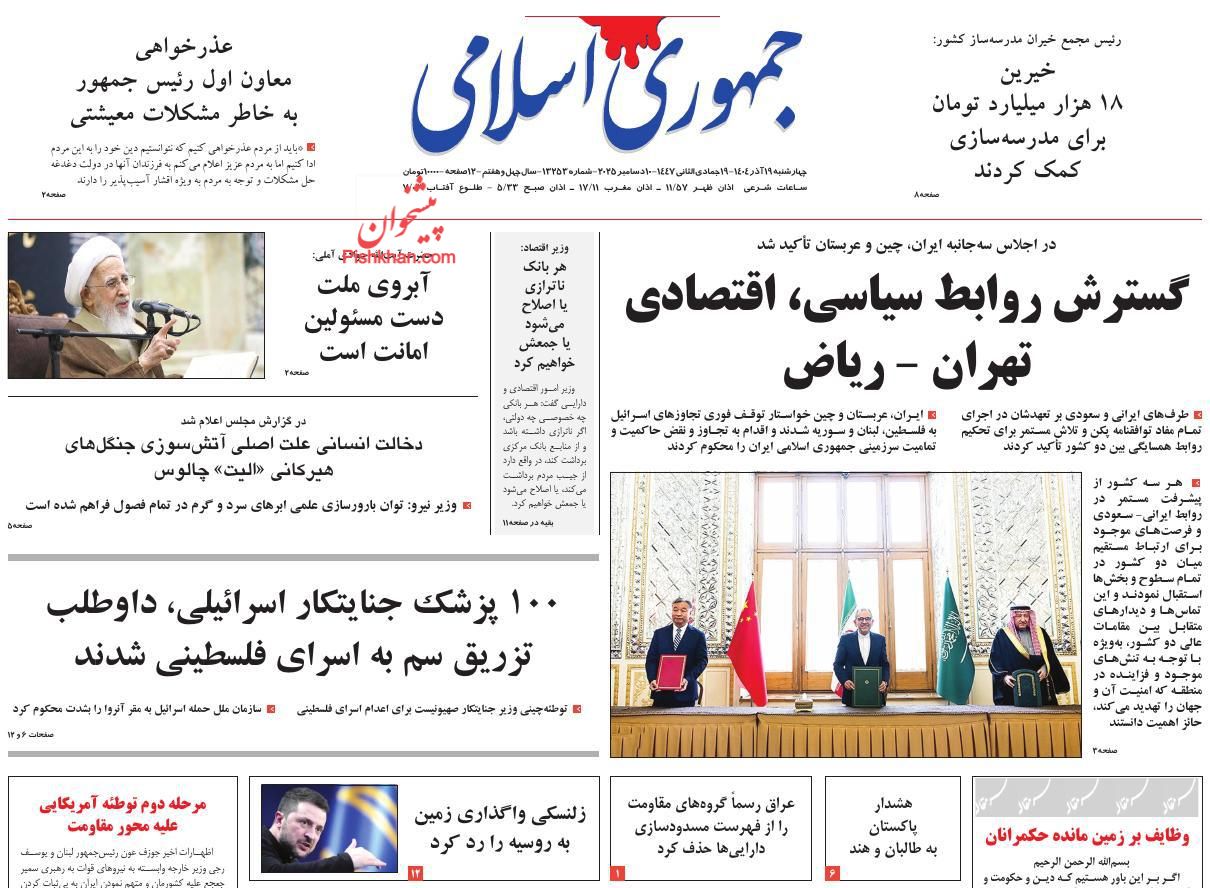 جمهوری اسلامی ، چهارشنبه ۱۹ آذر