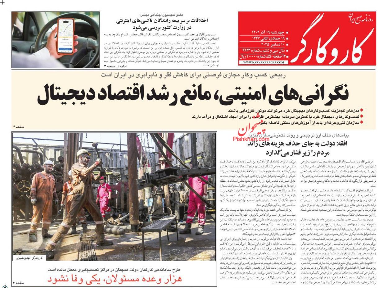 کار و کارگر ، چهارشنبه ۱۹ آذر