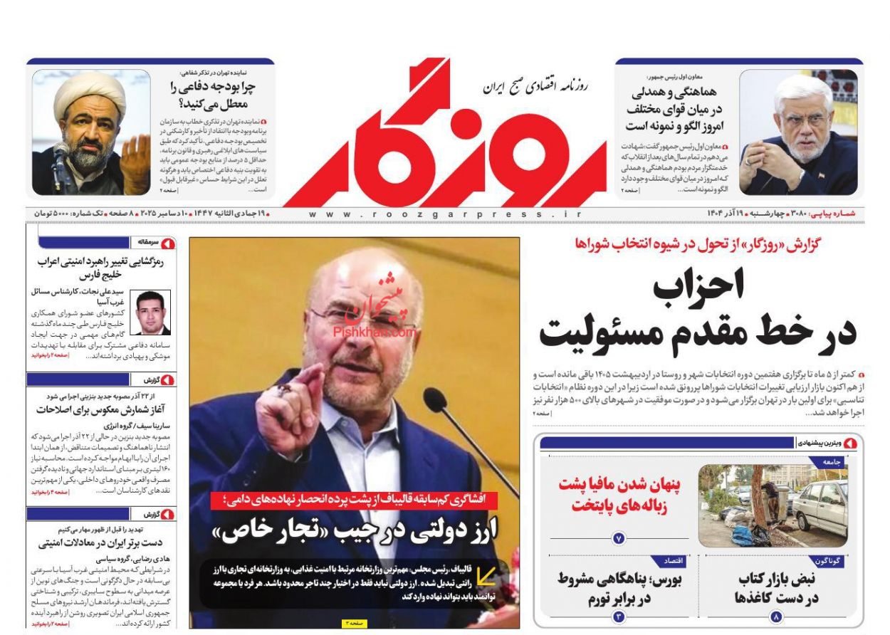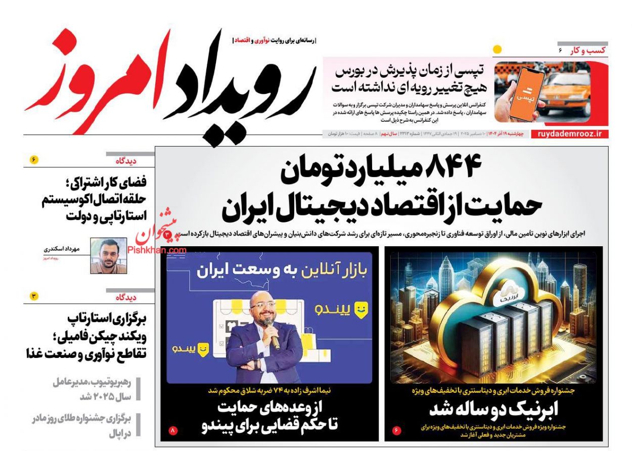 نقش اقتصاد ، چهارشنبه ۱۹ آذر