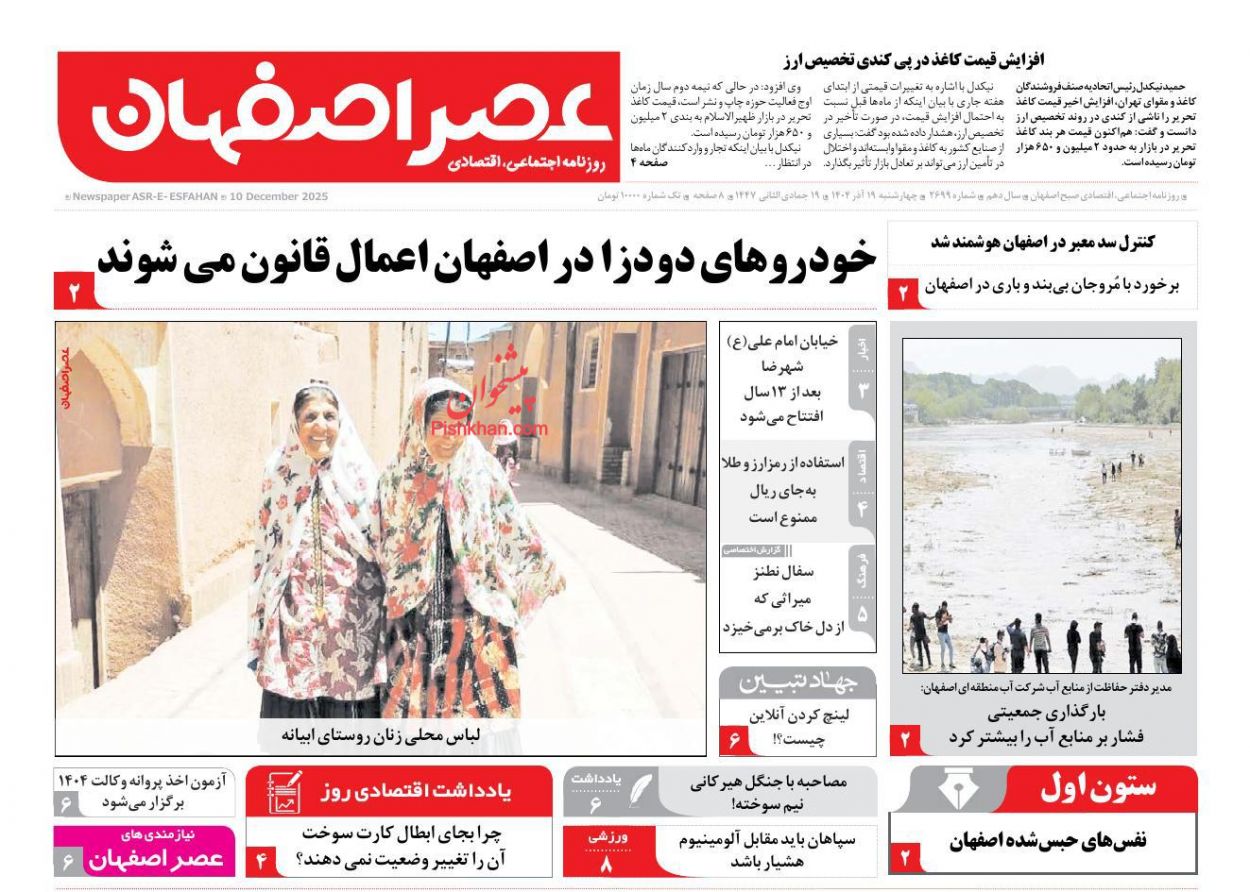 عصر اصفهان ، چهارشنبه ۱۹ آذر