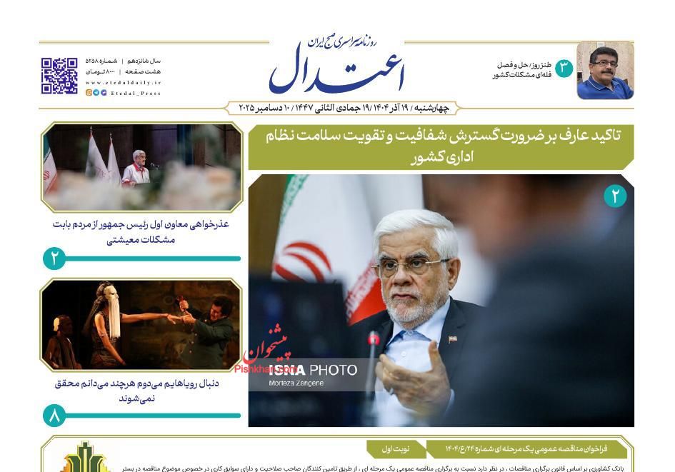 اعتماد ، چهارشنبه ۱۹ آذر
