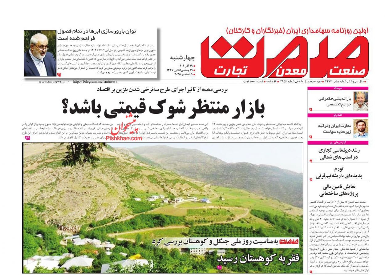 ابرار اقتصادی ، چهارشنبه ۱۹ آذر