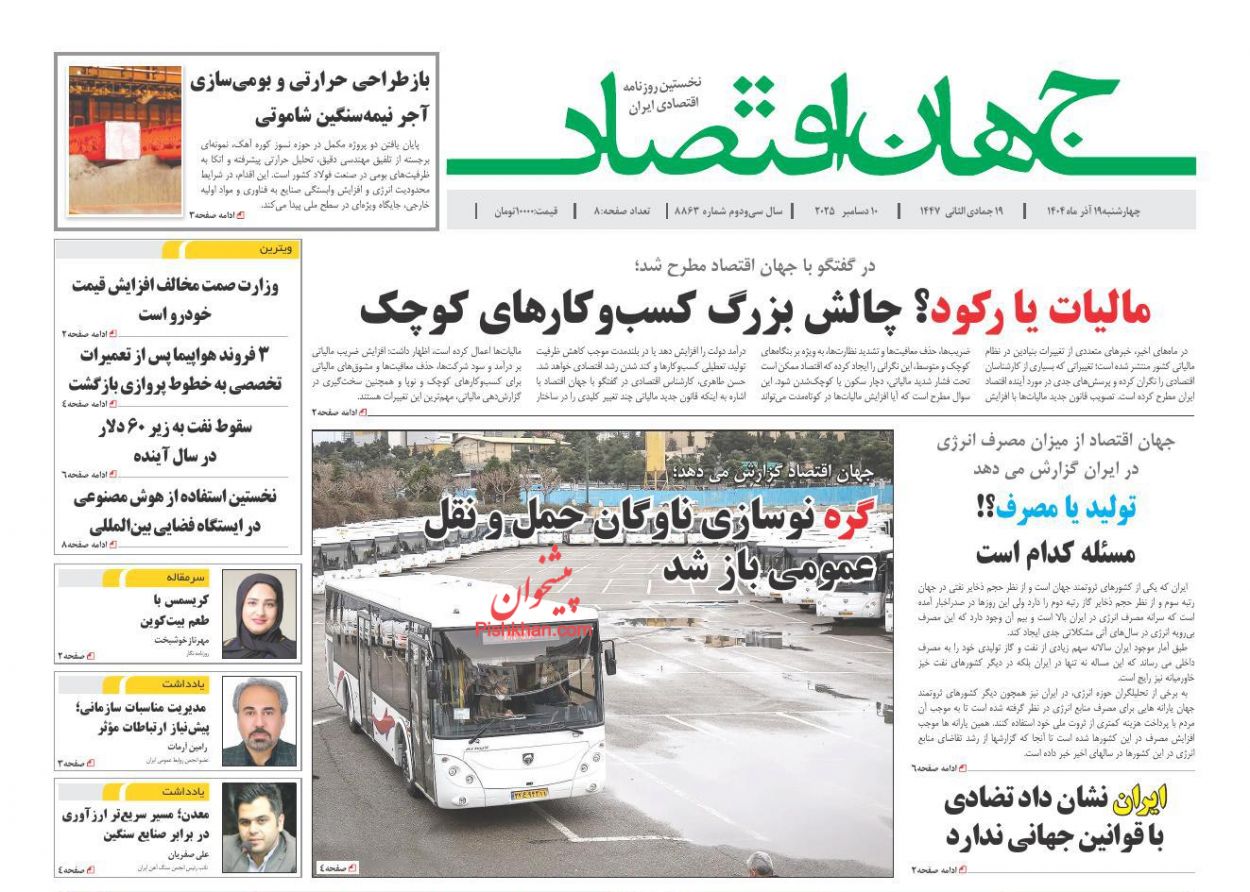 جهان اقتصاد ، چهارشنبه ۱۹ آذر