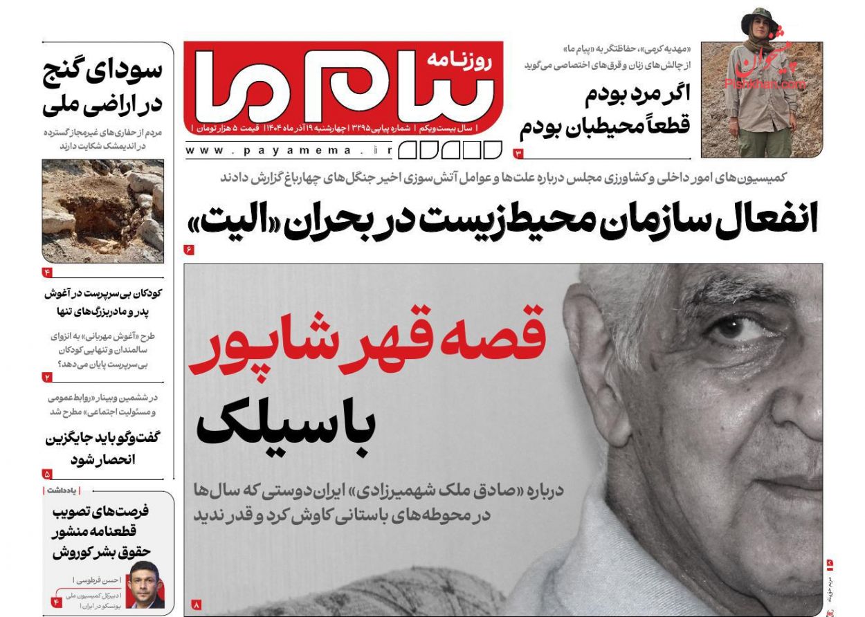 پیام ما ، چهارشنبه ۱۹ آذر