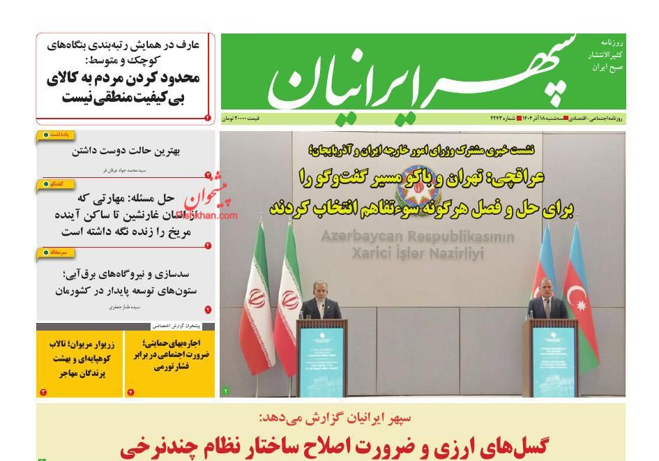 سپهر ایرانیان ، چهارشنبه ۱۹ آذر