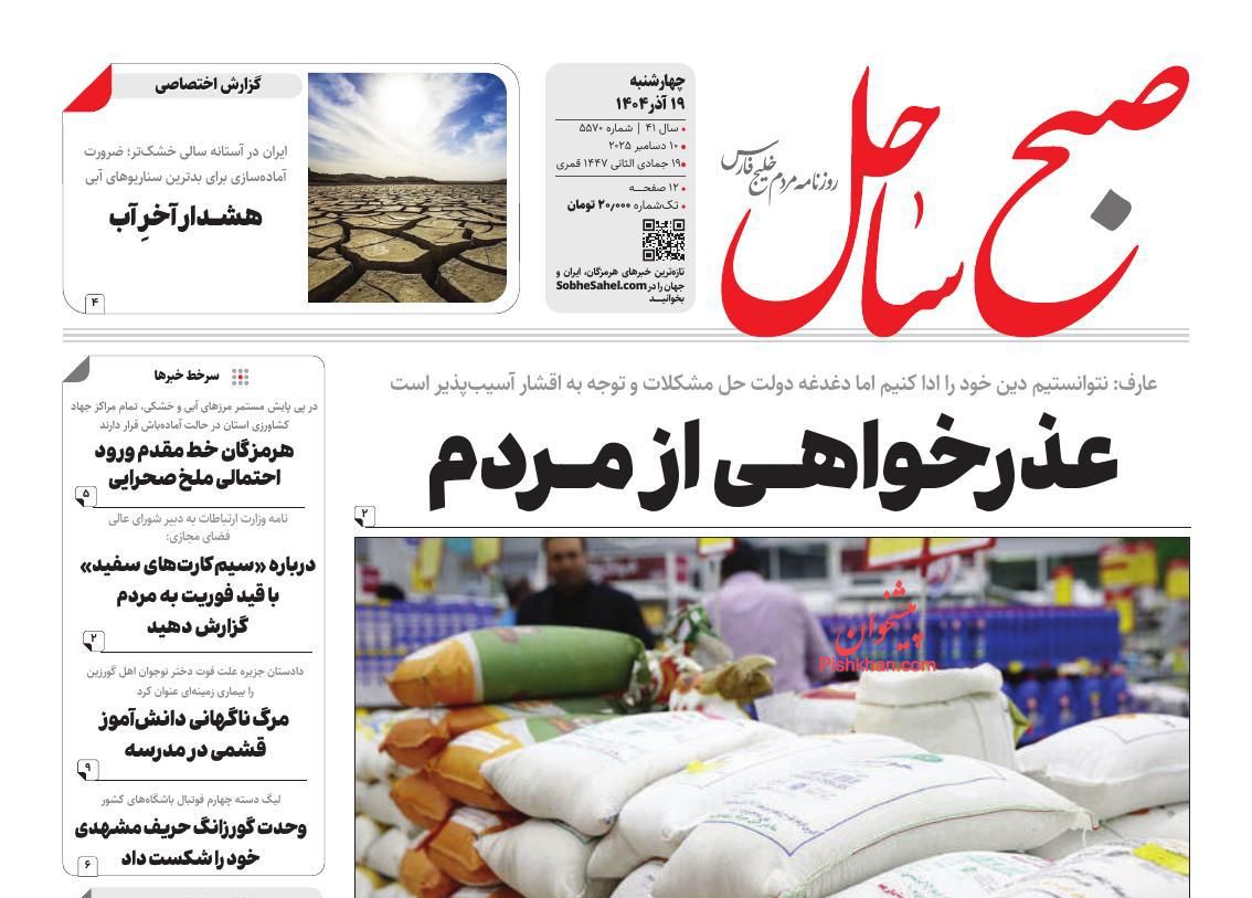 ابرار ، چهارشنبه ۱۹ آذر