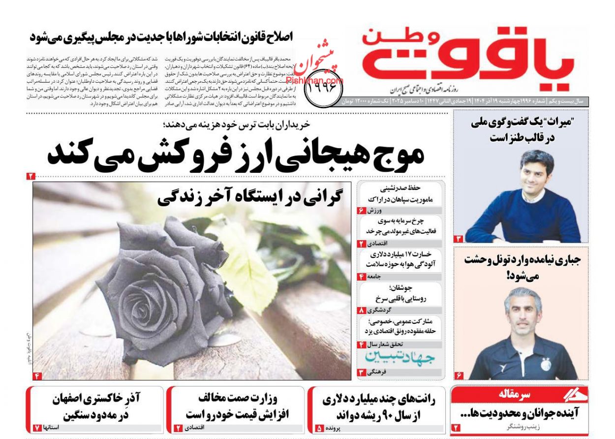 صدای اصلاحات ، چهارشنبه ۱۹ آذر