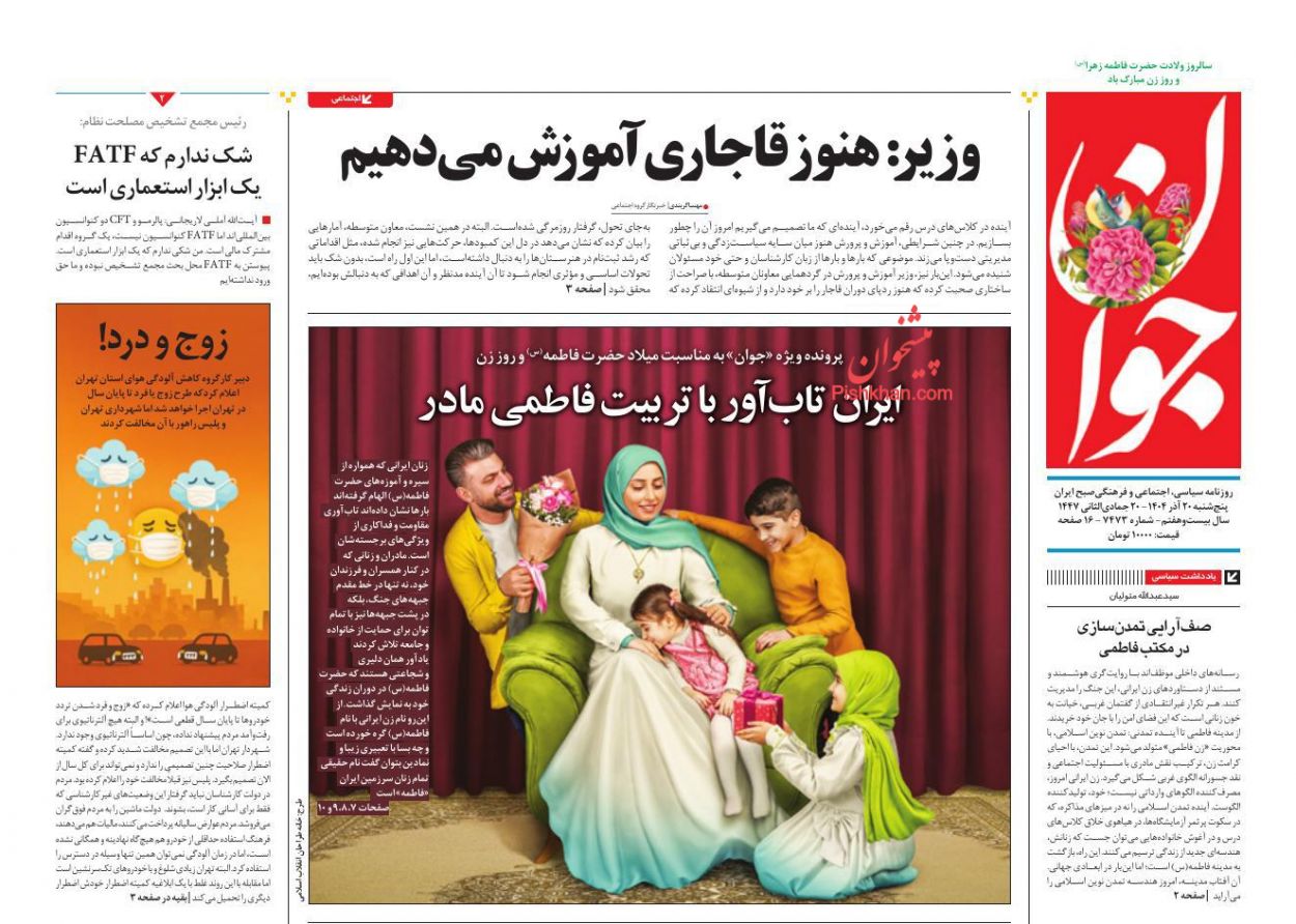 جوان ، پنجشنبه ۲۰ آذر