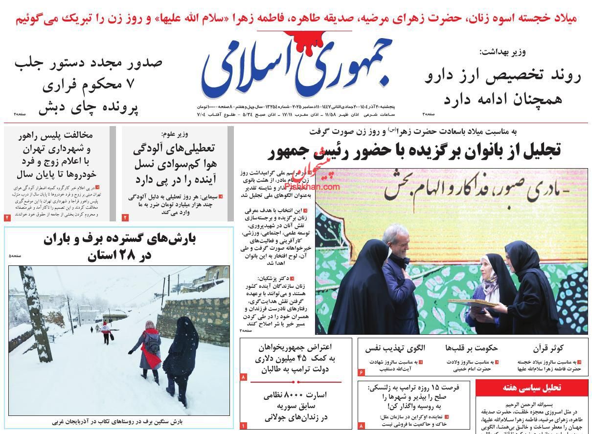 جمهوری اسلامی ، پنجشنبه ۲۰ آذر