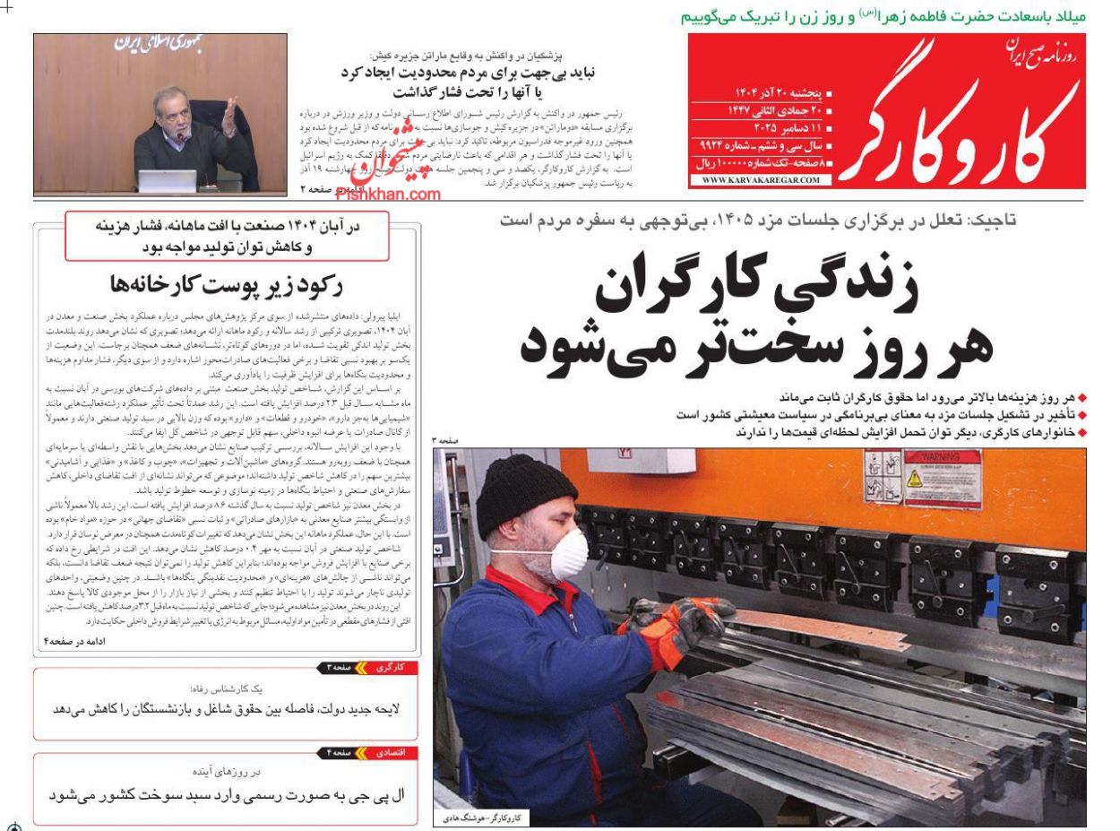 کار و کارگر ، پنجشنبه ۲۰ آذر