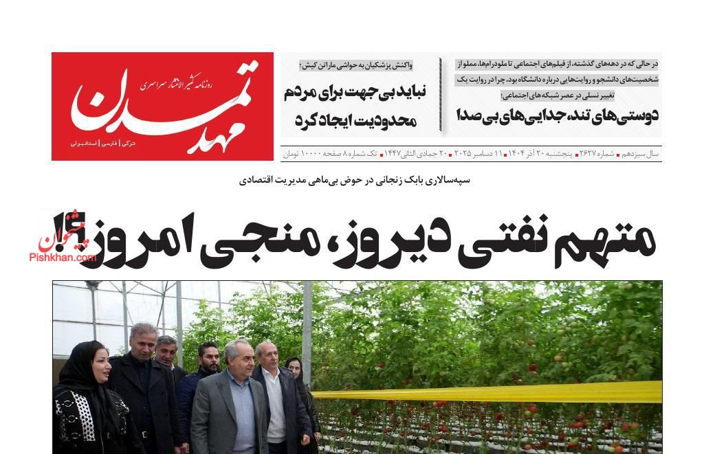 عصر ایرانیان ، پنجشنبه ۲۰ آذر