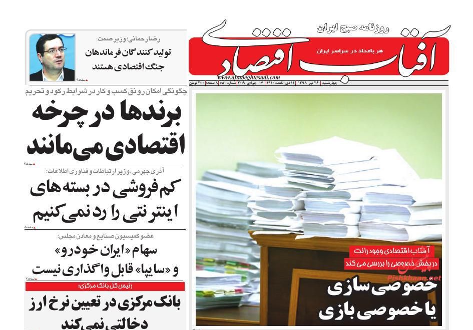 ابرار اقتصادی ، چهارشنبه ۲۶ تیر