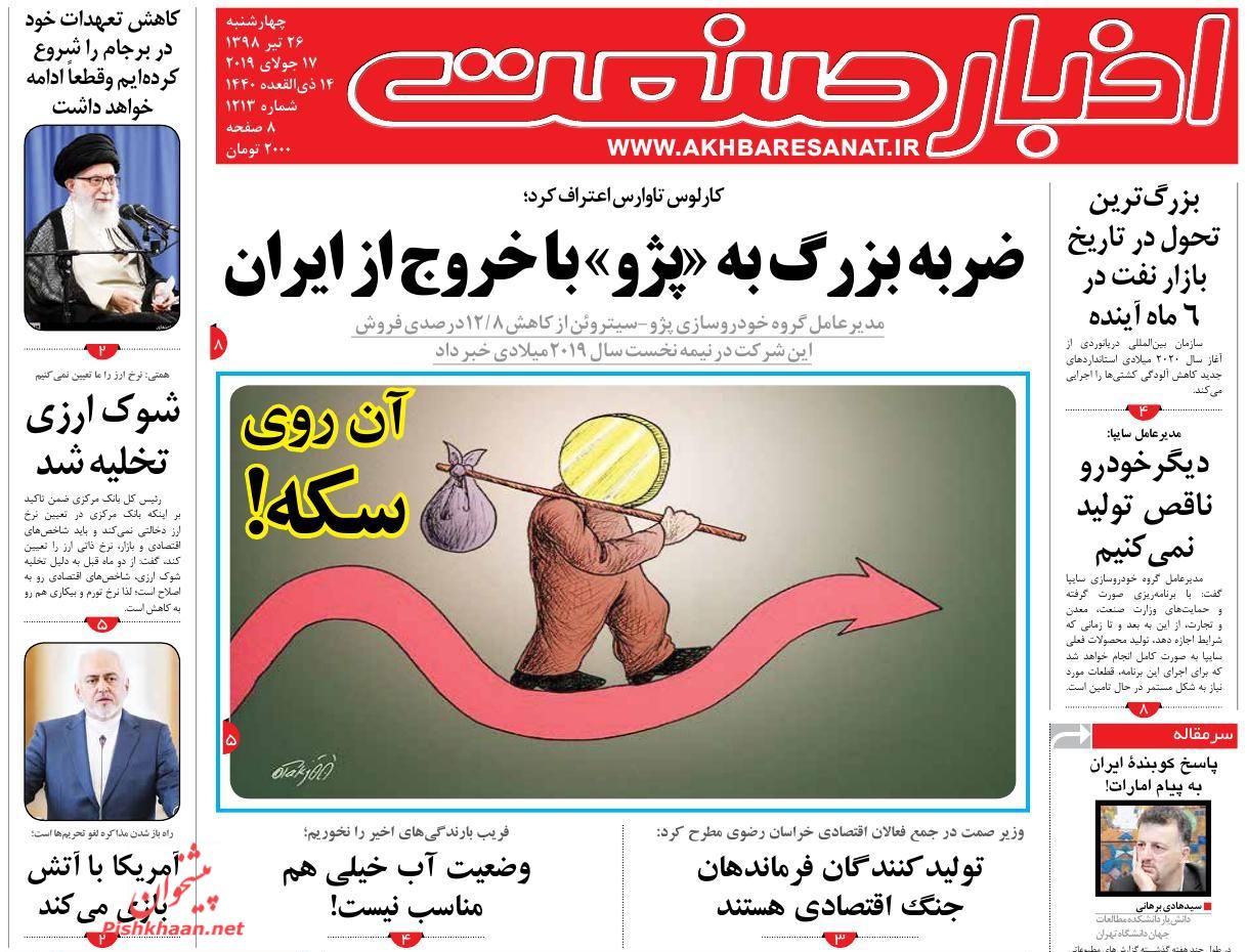 اخبار صنعت ، چهارشنبه ۲۶ تیر