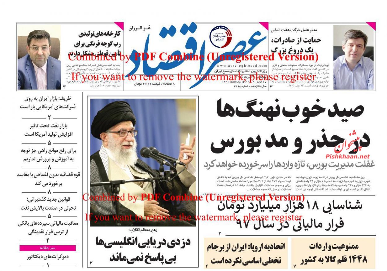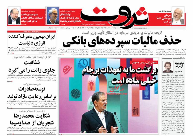 عصر اقتصاد ، چهارشنبه ۲۶ تیر