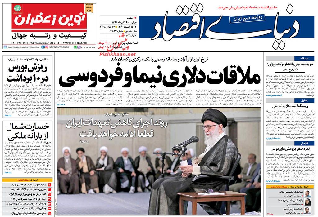 دنیای اقتصاد ، چهارشنبه ۲۶ تیر